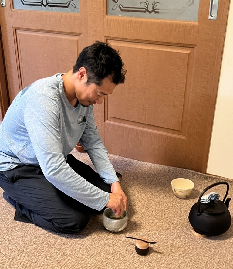 最後は、「IDGs 変容する組織」の著者、鬼木基行さんが、茶道の心得とお茶を立ててくださり、本を献本し、竹田市の和菓子とお抹茶を美味しく頂きました。