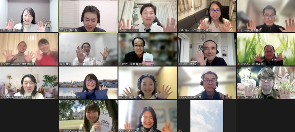 前年10月のストックホルムIDGsサミットに登壇された小原さんが、パリからオンラインで参加。1月初旬に行われたIDGs本部ステークホルダー代表ミーティングでの今年の世界戦略と方向性を、リアルタイムで共有してくださいました。世界の最前線の動きが、日本のコミュニティに直接届いた瞬間でした。